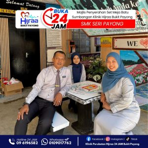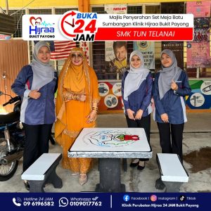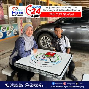 Dengan sukacitanya dimaklumkan bahawa Klinik Hijraa Bukit Payong telah menaja dan menyerahkan Set Meja Batu sebagai sumbangan komuniti kepada 𝗦𝗠𝗞 𝗦𝗲𝗿𝗶 𝗣𝗮𝘆𝗼𝗻𝗴 𝗱𝗮𝗻 𝗦𝗠𝗞 𝗧𝘂𝗻 𝗧𝗲𝗹𝗮𝗻𝗮𝗶 sebagai tanda sokongan terhadap pendidikan dan kesejahteraan bersama.